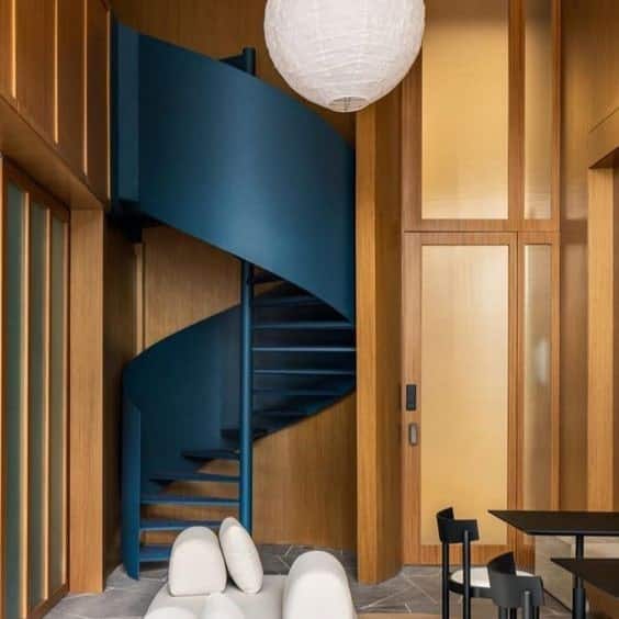 این نوع پله ها به دور یک ستون مرکزی می چرخند و فضای بسیار کمی اشغال می کنند. پله های مارپیچ معمولاً در فضاهای کوچک یا برای ایجاد یک نقطه تمرکز زیبا استفاده می شوند. در خانه های با طراحی صنعتی، مدرن یا مینیمال که فضا محدود است یا یک عنصر بصری جذاب مورد نیاز است.