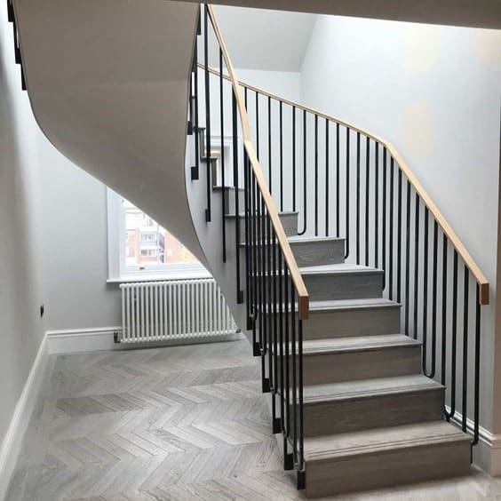 این نوع پله ها به صورت منحنی و بدون زاویه تیز طراحی شده اند و اغلب به صورت سفارشی برای فضاهای بزرگ تر ساخته می شوند. این نوع پله ها میتوانند یک عنصر دکوراتیو و مجلل به خانه اضافه کنند. مناسب برای خانه های بزرگ و مجلل با طراحی داخلی کلاسیک یا معاصر.